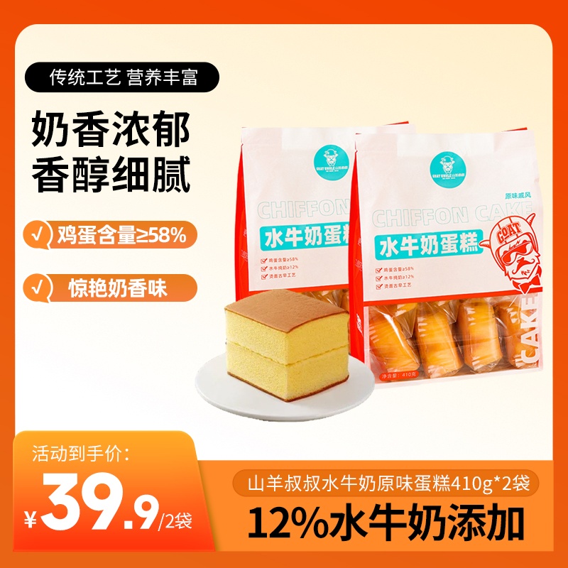 山羊叔叔轻牛乳蛋糕408g/箱(8袋) 15天短保 新鲜现做