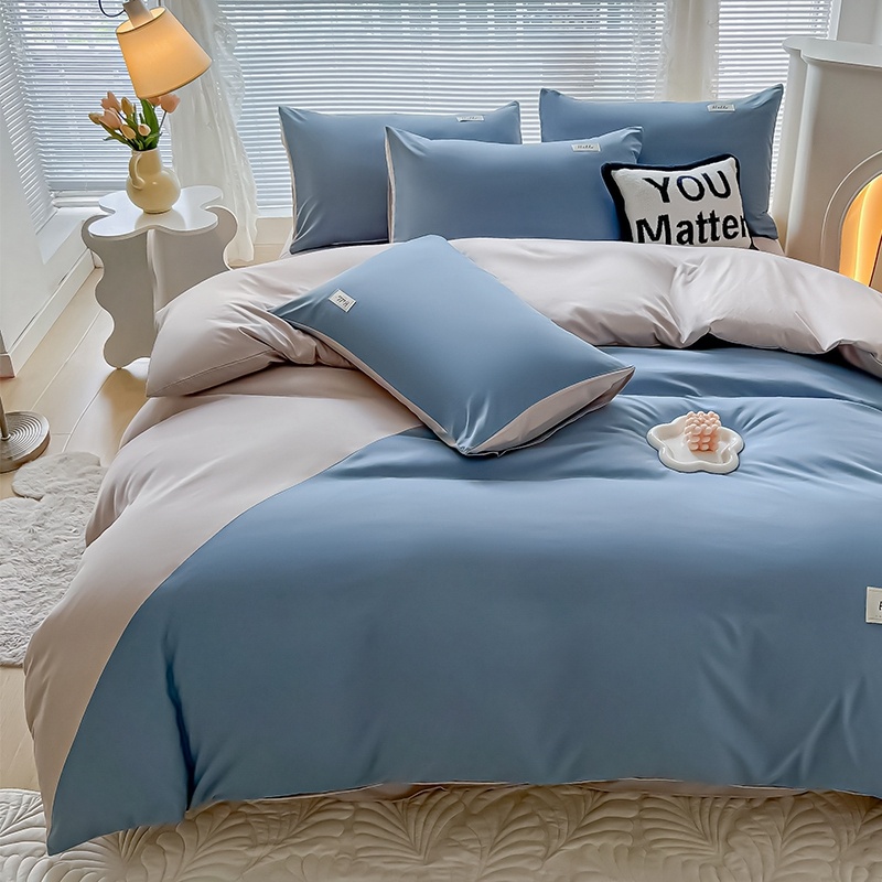 姿霖亲肤棉纯色双拼碎花磨毛MG四件套 布丁奶茶+海盐 150*200cm