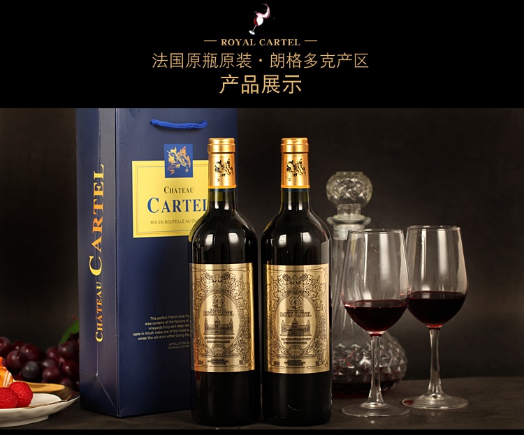 卡特尔法国进口皇家干红葡萄酒750ml*2支带1个皮盒[GQ-KTR-007]
