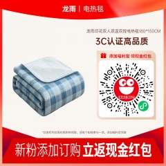 龙雨印花双人双温双控电热毯180*150CM 深蓝格子
