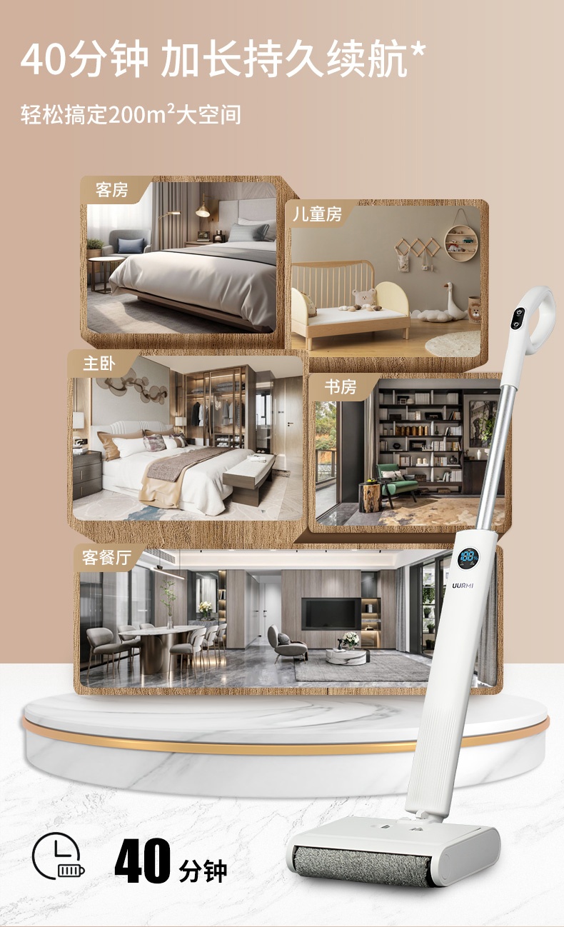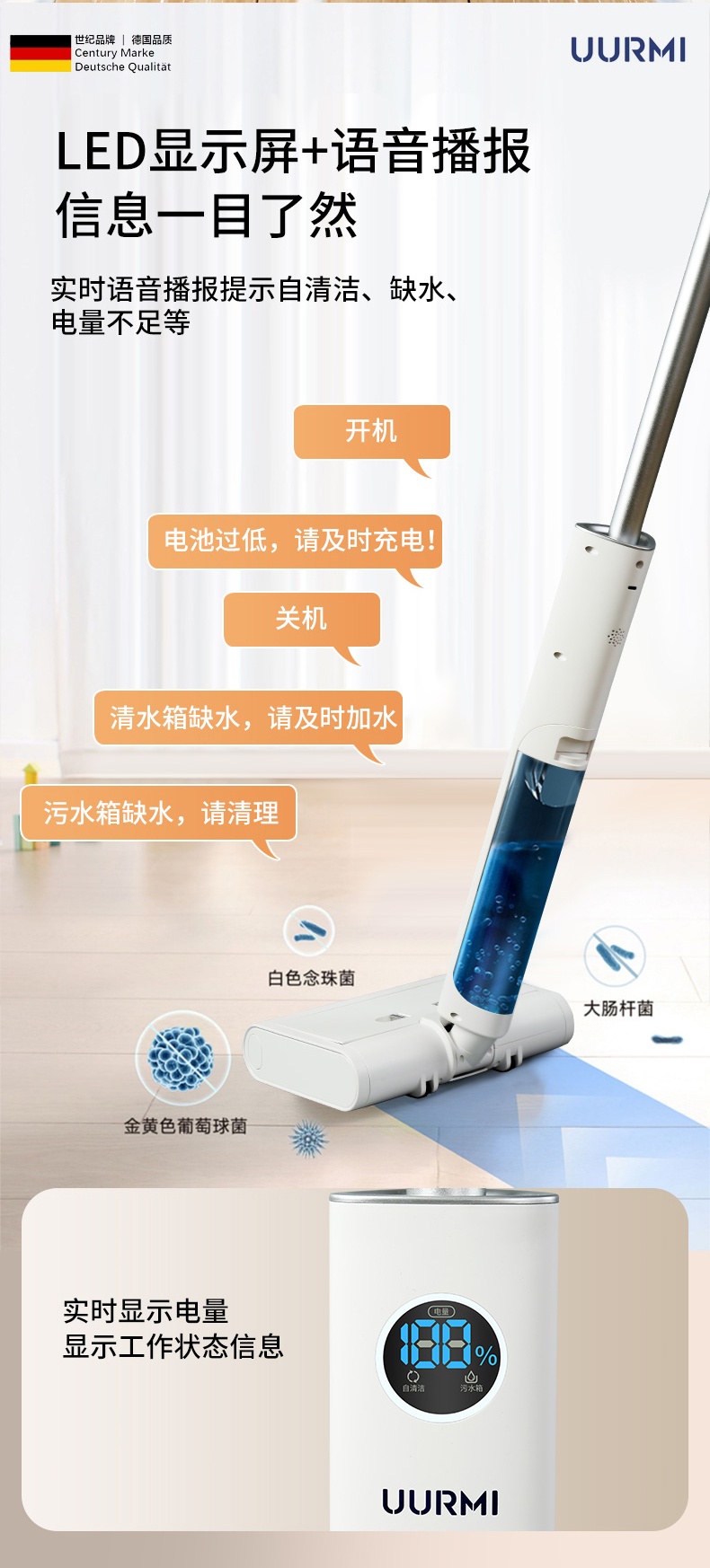 UURMI德国品牌新品F18洗地机 家用吸尘扫地拖地超轻便无线洗地机 白色F18洗地机