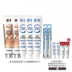 参半 羟基磷灰石牙膏95g*3+美白清新100g*2 赠牙刷*2+牙膏20g*2+牙膏20g*2