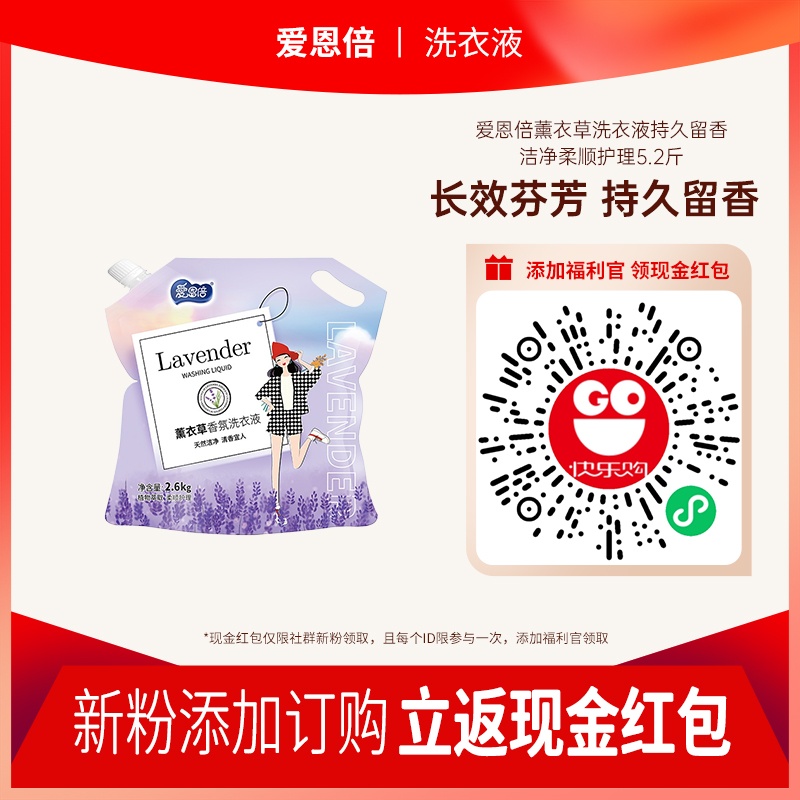 爱恩倍植物氨基酸多效洗衣液持久留香去渍2.6kg*2桶