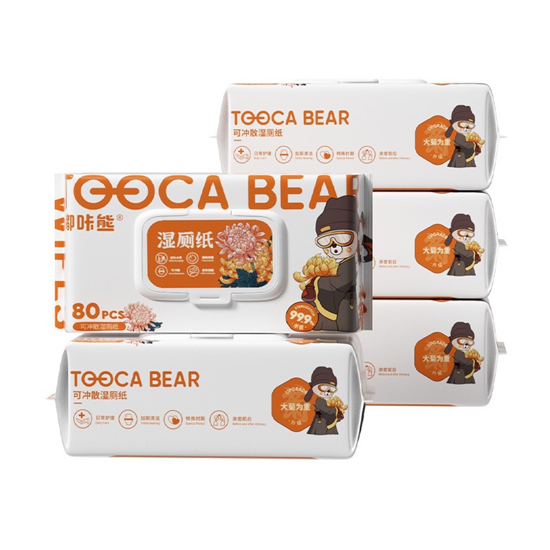 嘟咔熊菊花系列可冲散湿厕纸卫生清洁湿巾40抽*5包