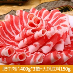 原野珍食 原切肥牛肉片(400g/袋*3袋+150g辣火锅底料1袋)