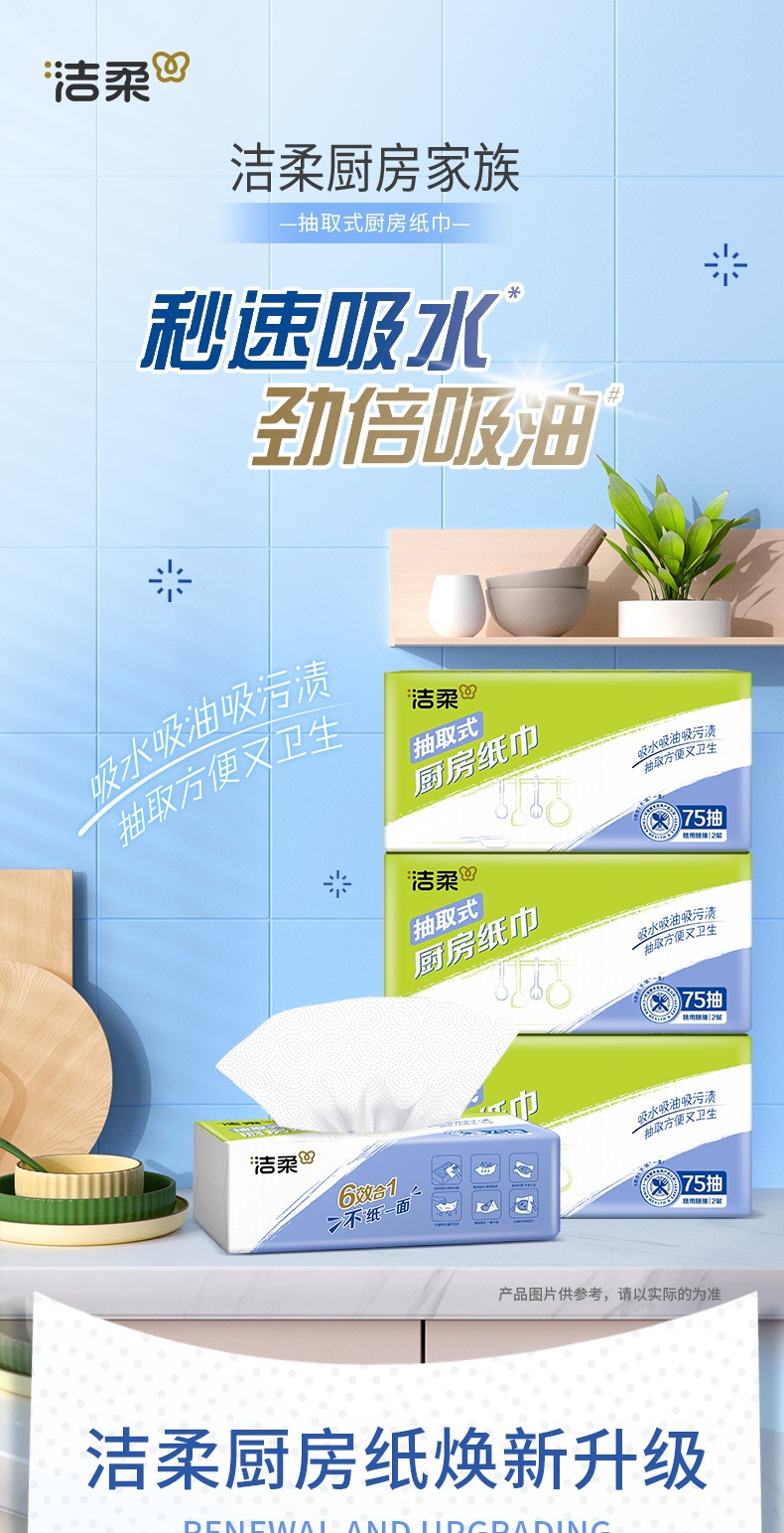 洁柔卷筒式厨房纸巾厨房料理用纸75节*8卷(JK008-08E)