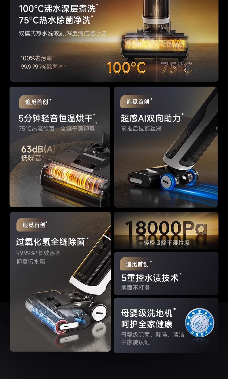 追觅无线家用洗地机G600吸拖一体自动清洗拖地机(双侧0贴边大吸力)