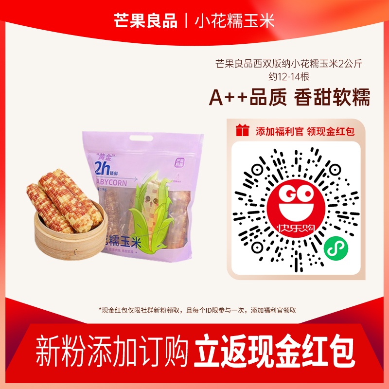 【买2斤送2斤】芒果良品西双版纳拇指糯玉米带箱约4斤 约40-44根