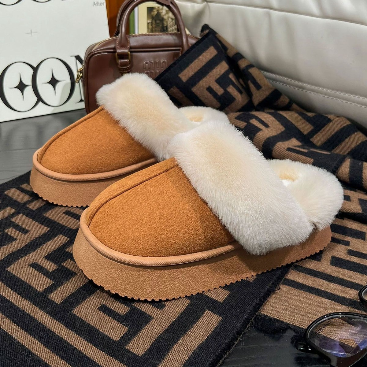蚂蚁之恋loveofants冬季情侣包跟外穿棉拖鞋9751 棕色 36-37