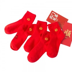 南极人秋冬袜子福字袜子大红袜男女喜庆本命年均码红色中筒袜子5双