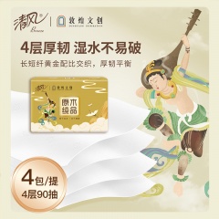 清风敦煌原木纯品抽取式面巾纸4层90抽*4包/提BR40ADHP