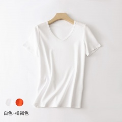 太阳城天丝醋酸桑蚕丝V领T恤2件组(女款) 冰川蓝+黑色 M