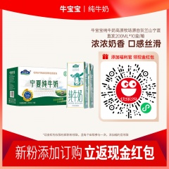 牛宝宝纯牛奶高原牧场源自贺兰山黄金奶源带宁夏直发200ml*10盒/箱 每百毫升含硒1.5微克