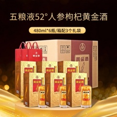 五粮液仙林生态黄金酒52°人参枸杞酒480ml*6瓶/箱配3个礼袋