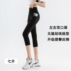 LuckyOzasec女士七分打底瑜伽裤运动裤85217 黑色 M