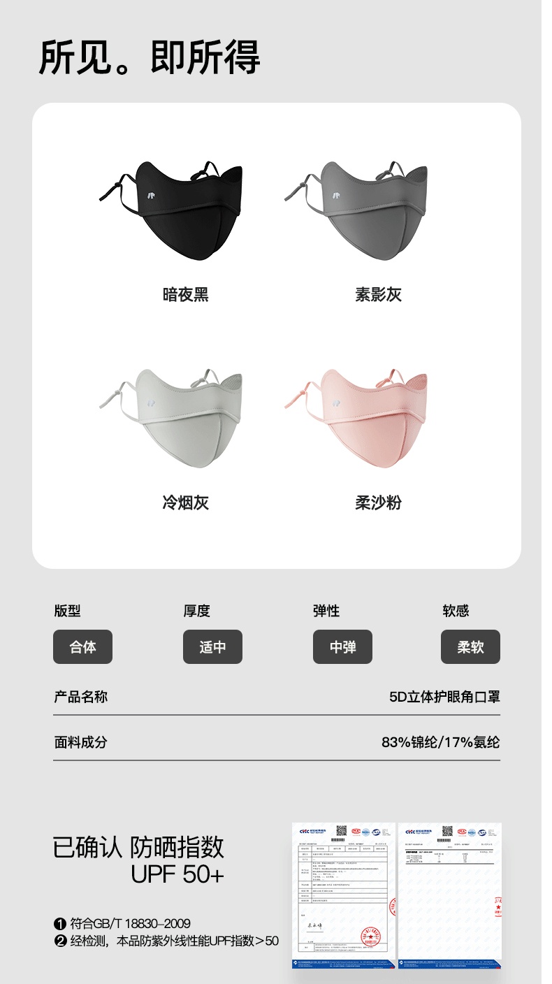 KIIYOO棵柚防晒口罩女3d立体口罩 樱桃粉