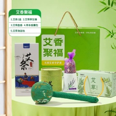 艾香聚福五件套礼品套装艾草盘香艾草锤艾条薰香包泡浴包