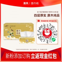 清风敦煌原木纯品抽取式面巾纸4层90抽*4包/提BR40ADHP