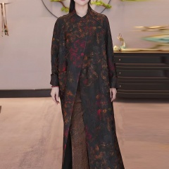 千奈莉绫绡缎设计师款加厚双面香云纱风衣YJ271 红牡丹 L