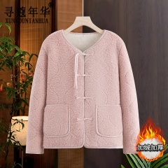 寻蔻年华开衫中式纯色圆领加绒保暖外套上衣HOR91006 粉色 XL