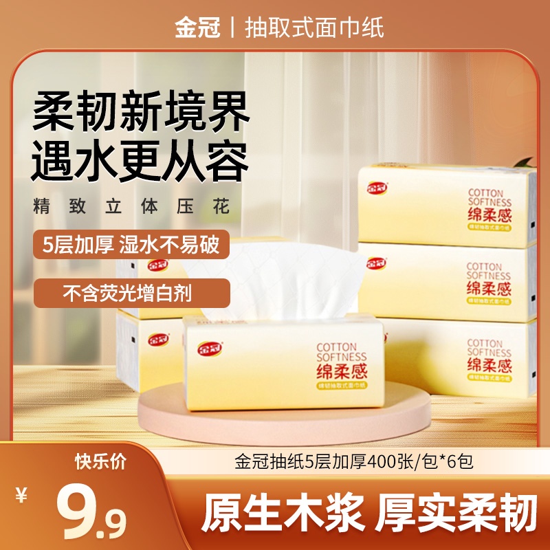 金冠抽纸5层加厚280张/包*30包软抽干湿两用湿水不破