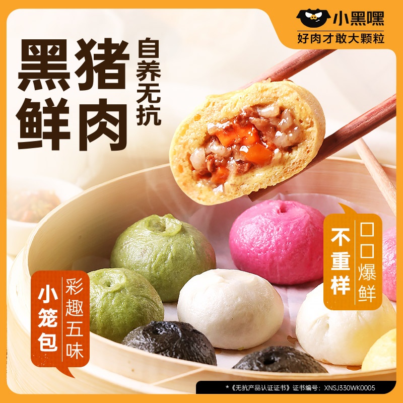 小黑嘿*芒果良品五色款黑猪肉小笼包150g*6袋装 送100g猪油一支