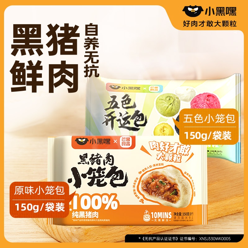 小黑嘿*芒果良品五色款黑猪肉小笼包150g*2袋