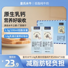 皇氏水牛3.8g乳蛋白低脂纯牛奶200ml*10盒