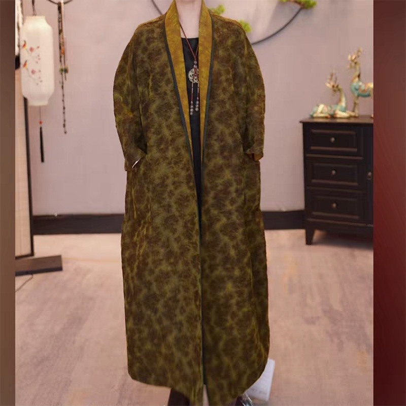 千奈莉青铜长丝锦油缎珍藏翻领香云纱风衣YJ043 青铜器 XL