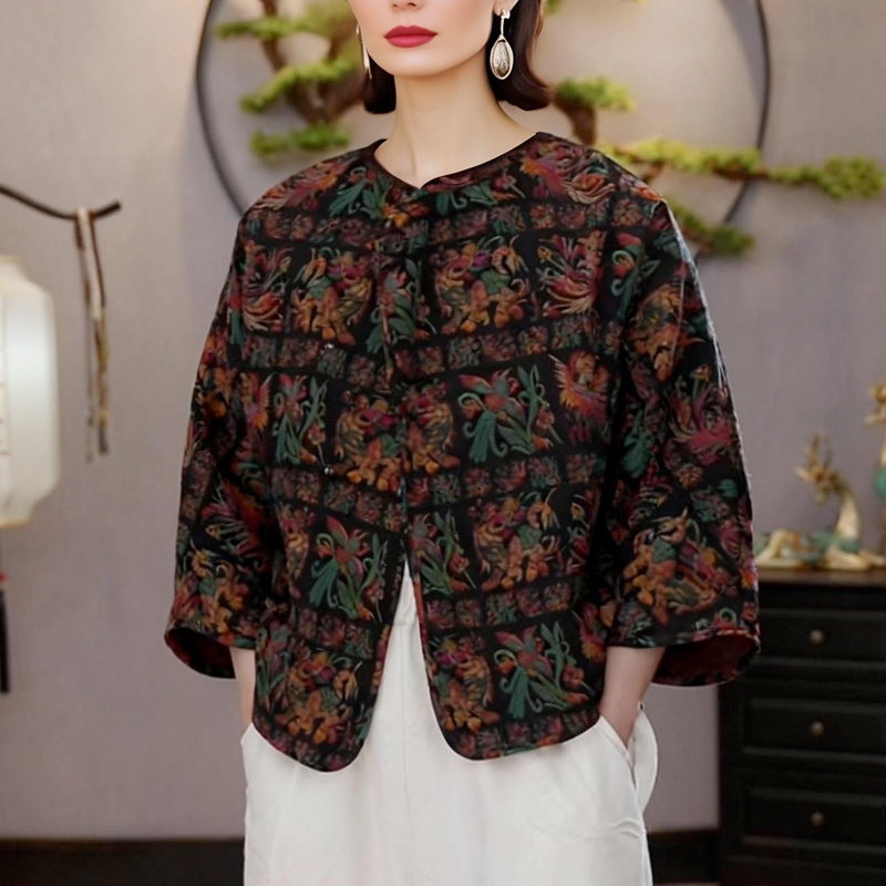 千奈莉手工彩绘柞蚕丝双面香云纱大衣YJ255 彩绘 L