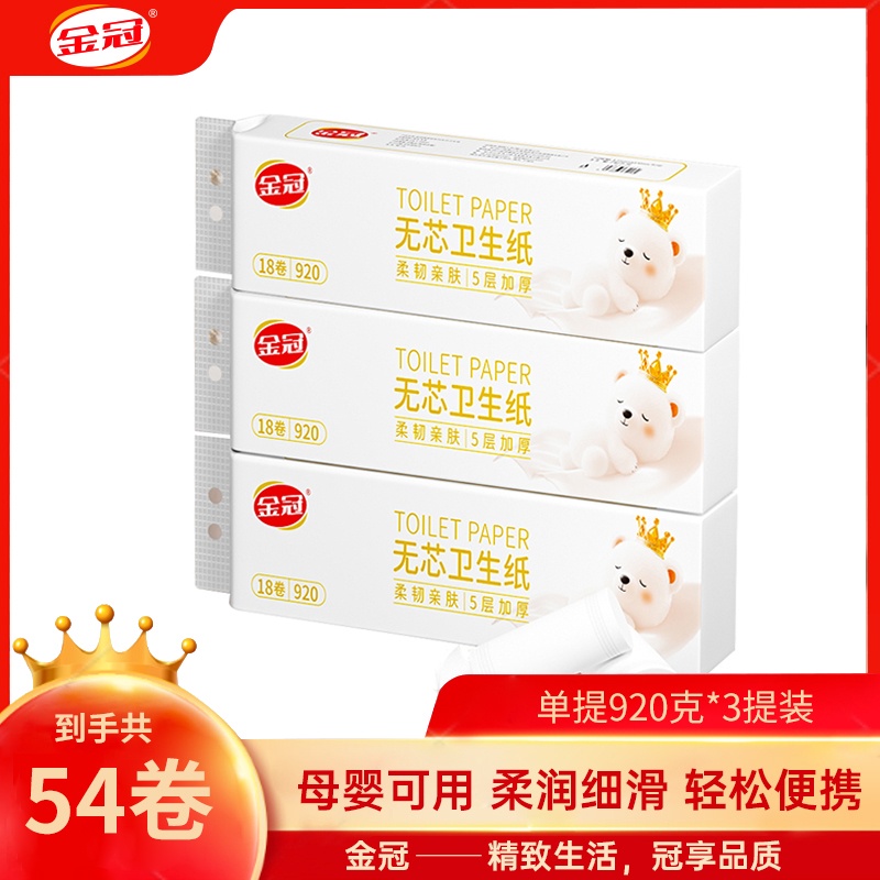 金冠无芯卷纸920g大克重五层加厚绵柔质感18卷*1提THY5920G01