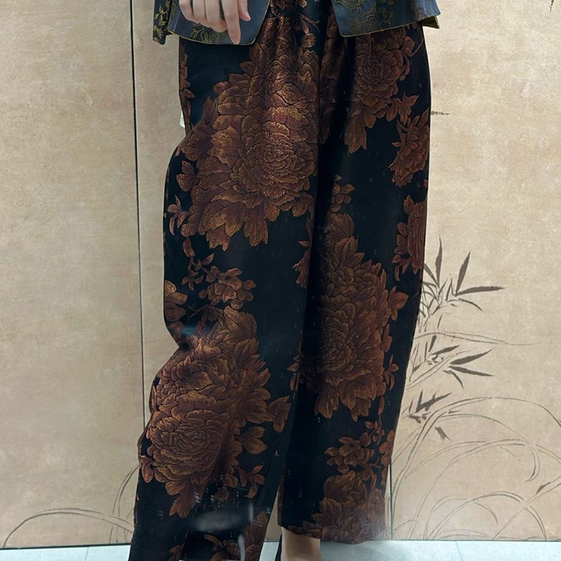 千奈莉缂丝雕花锦油缎香云纱花苞裤YJ023 白色 L