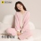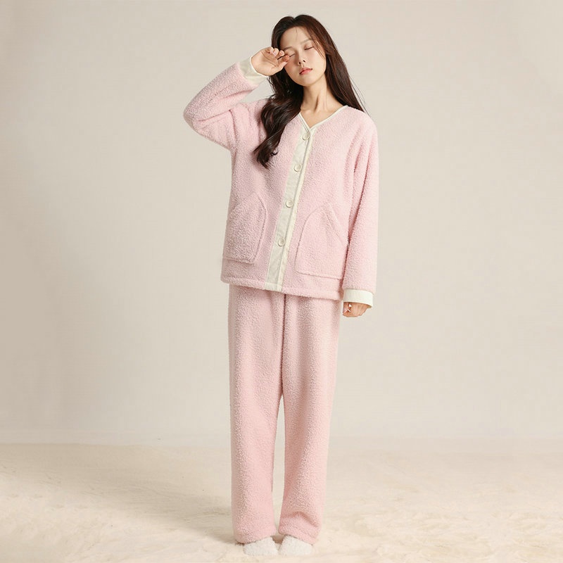 意丝涵秋冬季雪花绒撞色保暖长袖开衫套装可外穿家居服女款560275 杏花粉 M