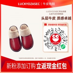 LuckyOzasec男女保暖头层牛皮防滑拖鞋NPPJ 酒红 25(35-36)