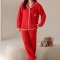 意丝涵秋冬加厚玉晶绒保暖V领开衫套装家居服女款560283 落樱粉 M