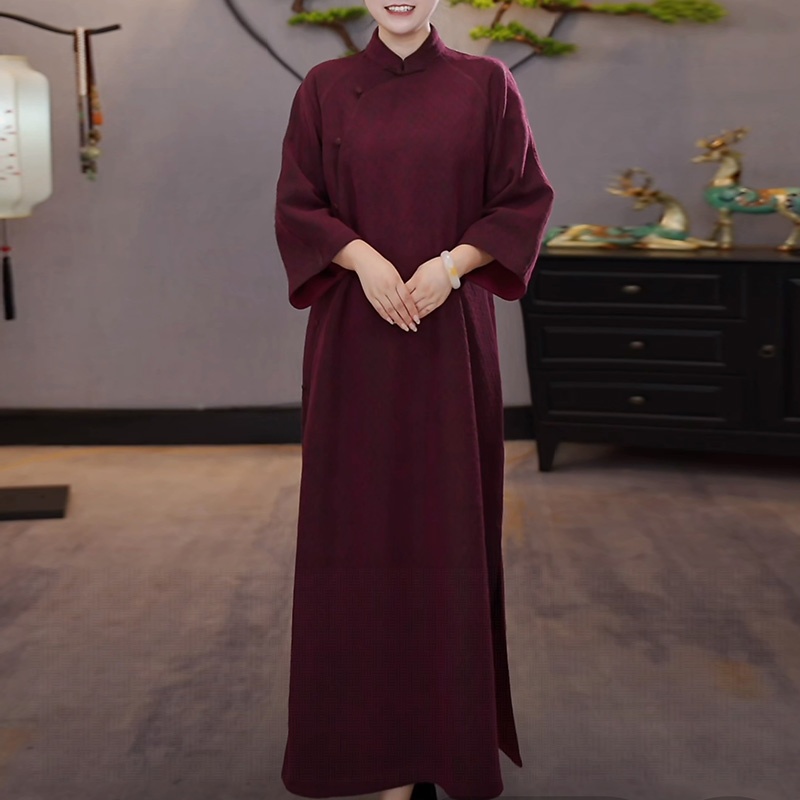 千奈莉绫绡缎设计师款加厚双面香云纱风衣YJ271 红牡丹 L