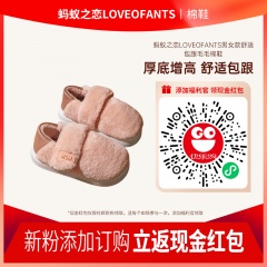蚂蚁之恋loveofants男女款舒适魔术贴包跟毛毛棉鞋9271 橘粉 36-37
