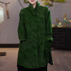 千奈莉花雕柞蚕丝蚕丝填充香云纱棉服YJ057 绿色 L