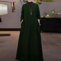 千奈莉疙瘩绉柞蚕丝双面穿香云纱连衣裙23-40 绿色 L