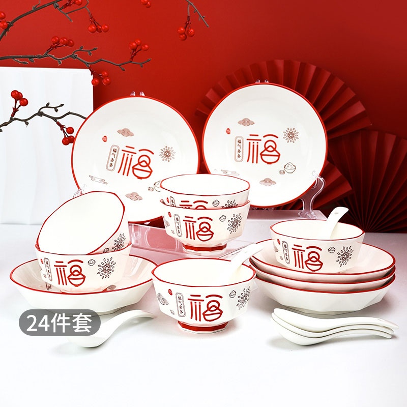 孟垣福气多多10件套伴手礼礼盒装(4碗2盘4勺)