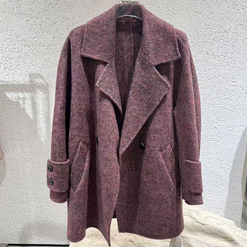帕佳妮宽松复古长款羊毛羊驼大衣85148 赤铜色 M
