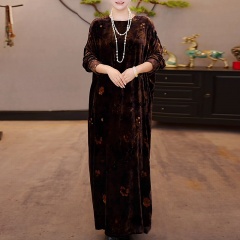 千奈莉花印加厚加密不倒绒真丝丝绒连衣裙YJ277 咖金色 L