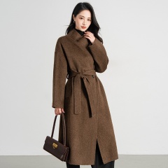 帕佳妮【10%牦牛绒 90%绵羊毛】厚暖休闲大衣85136 青咖 S