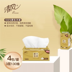 清风原木纯品抽取式面巾纸3层130抽*4包/提BR43AOJ4