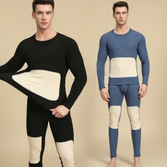 太阳城山羊绒桑蚕丝护膝款自发热保暖套装(男款) 黑色+蓝色 XL