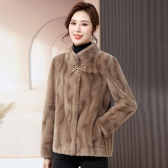 LuckyOzasec女士貂绒中式蓄暖保暖秋冬外套8073 驼色 XL