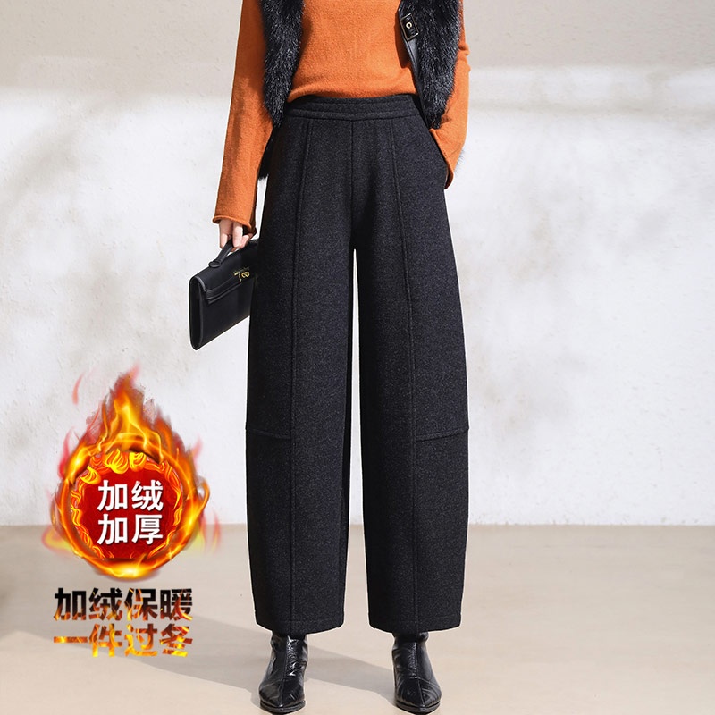LuckyOzasec女士加绒牛仔阔腿裤8385 黑蓝色 M
