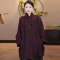 千奈莉100姆米柞蚕丝新中式古法香云纱外套YJ290 暗红色 L