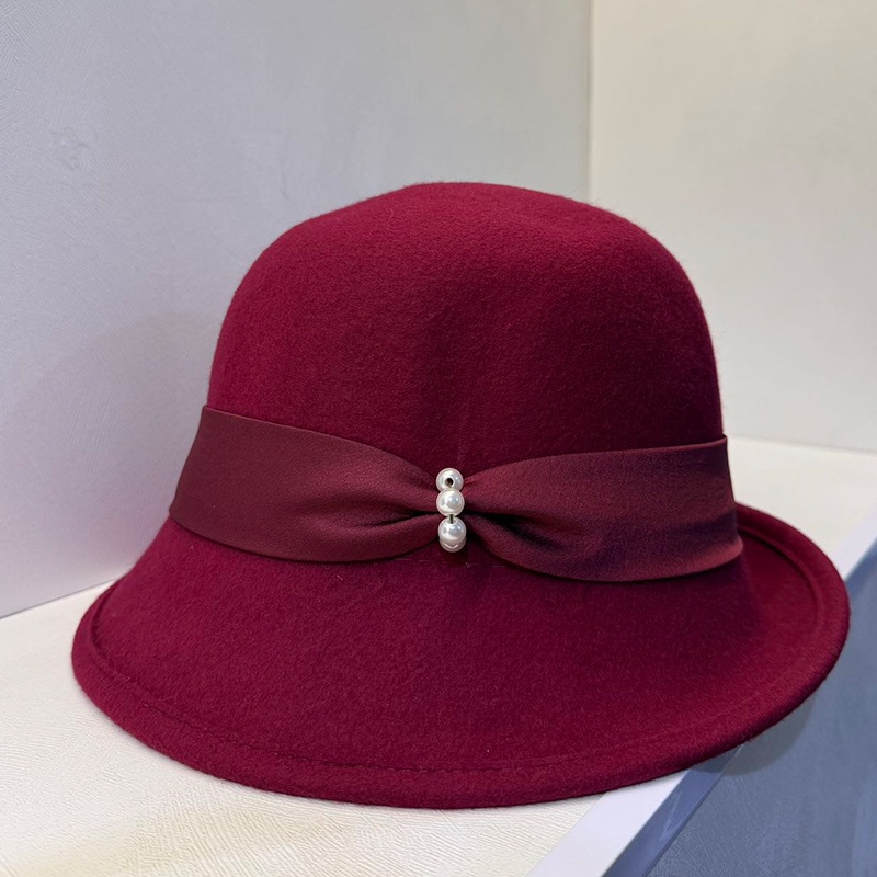 太阳城专柜显脸小羊毛卷边盆帽 酒红色 均码