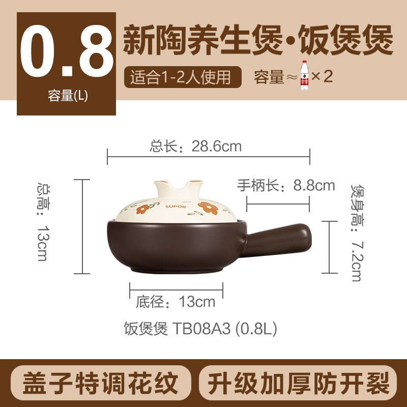苏泊尔【不易开裂】砂锅煲炖锅2L煲汤陶瓷煲石锅煲仔饭煤气灶专用TB20A3